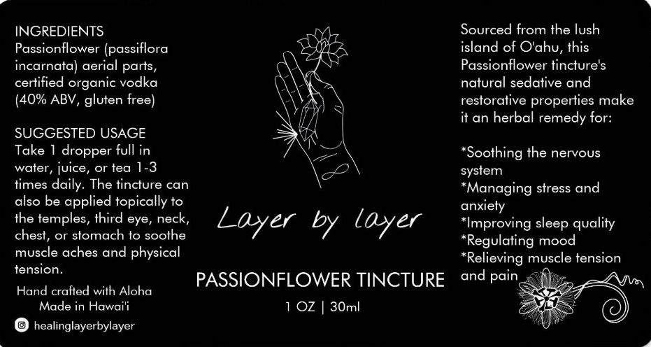Our Passionflower tincture is made in small batches and hand crafted with care and intention. The Passionflower is sourced on the island of O'ahu, where it grows wild and abundant. With deep respect for the plant and its natural environment, we carefully handpick each flower and leaf at the peak of its potency to ensure a mindful harvesting process.